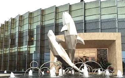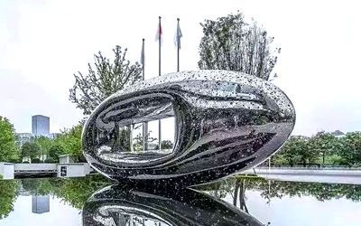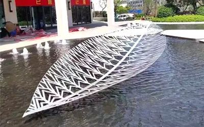 酒店不銹鋼雕塑以美為主,一般為裝飾性美陳景觀(guān)雕塑,常見(jiàn)于酒店大門(mén)、大堂、園林。包括但不限于水景景觀(guān)類(lèi),如圓環(huán)、噴泉、鏤空球;裝飾美陳類(lèi),如蓮花、翅膀、鵝卵石、水滴等。
