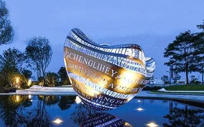 地產(chǎn)類(lèi)不銹鋼雕塑以大氣磅礴為主要表現(xiàn)形式,一般都是抽象的,傳遞一種視覺(jué)上的震撼效果,常見(jiàn)如圓環(huán)、鏤空球、云朵、假山、浪花、水滴等等。